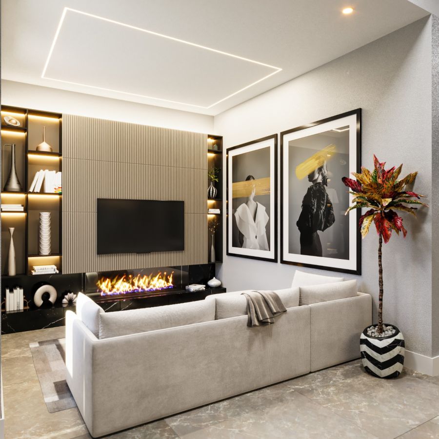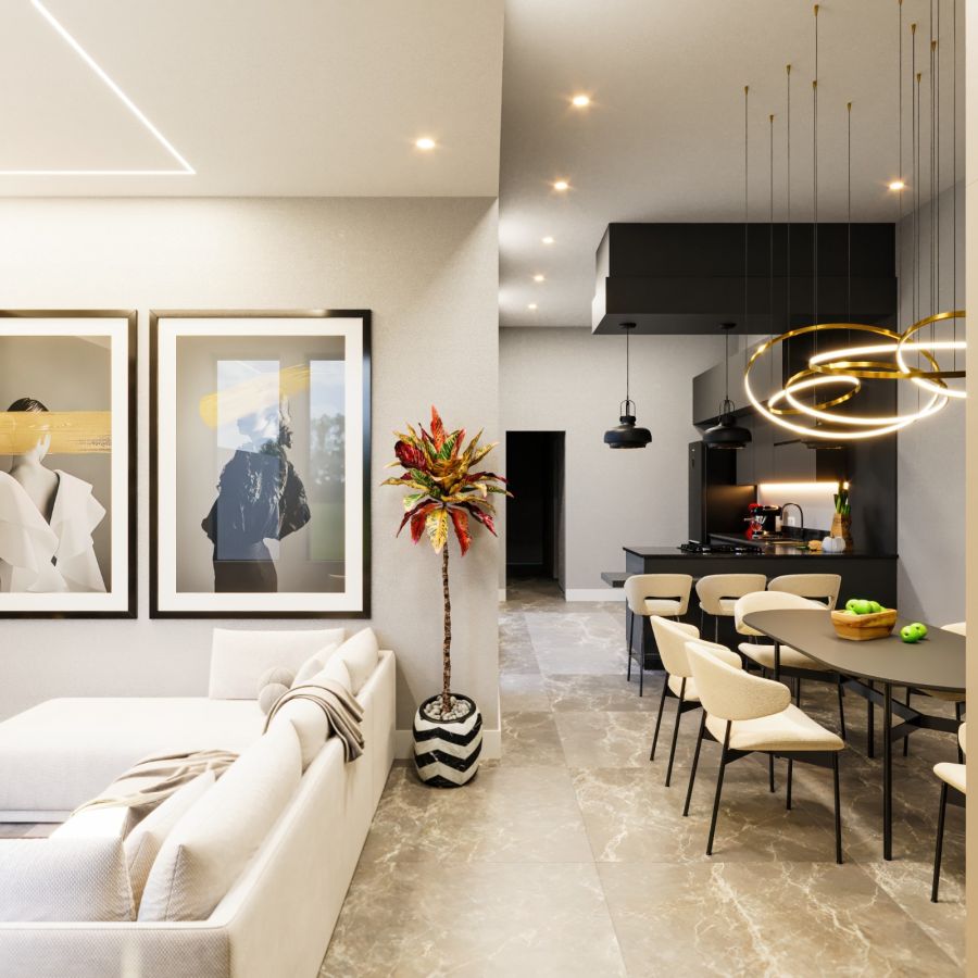 A unidade dispõe de uma distribuição inteligente dos ambientes, composta por 3 dormitórios, sendo 1 suíte privativa. A área social conta com uma sala ampla integrada, projetada para proporcionar conforto e integração. O imóvel possui, ao todo, 2 banheiros e1 lavabo.